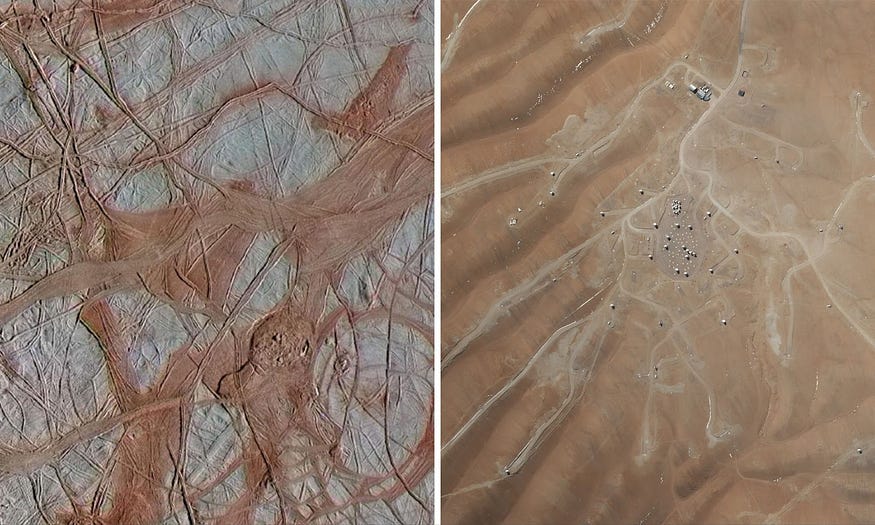 NASA / JPL-Caltech / SETI Intézet. • Jupiter Holdja, Európa / SkySat • Atacama nagy milliméteres tömb, Chile • 2019. május 21.